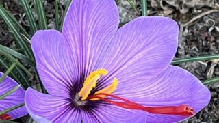サフランの花は、外花被片が3枚、内花被片が3枚、雄しべが3本、雌しべの柱頭が突き出て3裂。花被片が柔らかな甘い香りを漂わせます。サフランの概要、サフランの名前、サフランの姿形、サフランの利用について整理。